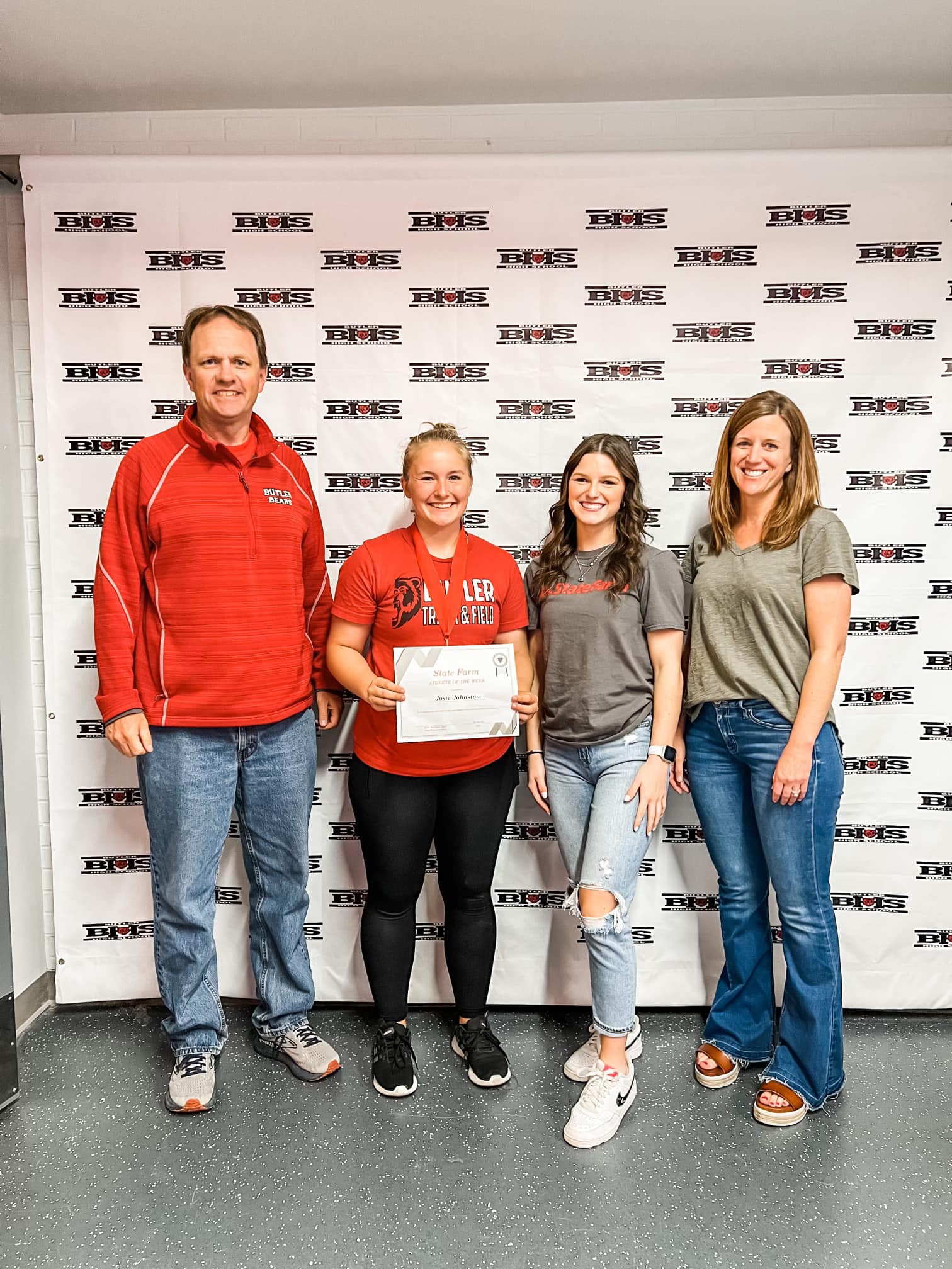 Pictured left to right: Richard Courter; Josie Johnston, daughter of Jeff and Becky Johnston; Baylie Pitts, State Farm; Kellie Davidson, State Farm.