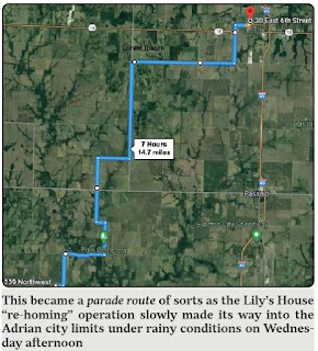 A speed of 2.1 miles per hour was the official average last Wednesday as Jonassen Structural Movers, LLC transported a two bedroom home to a new location in Adrian, Mo that will greatly benefit Lily’s House transitional graduates.
