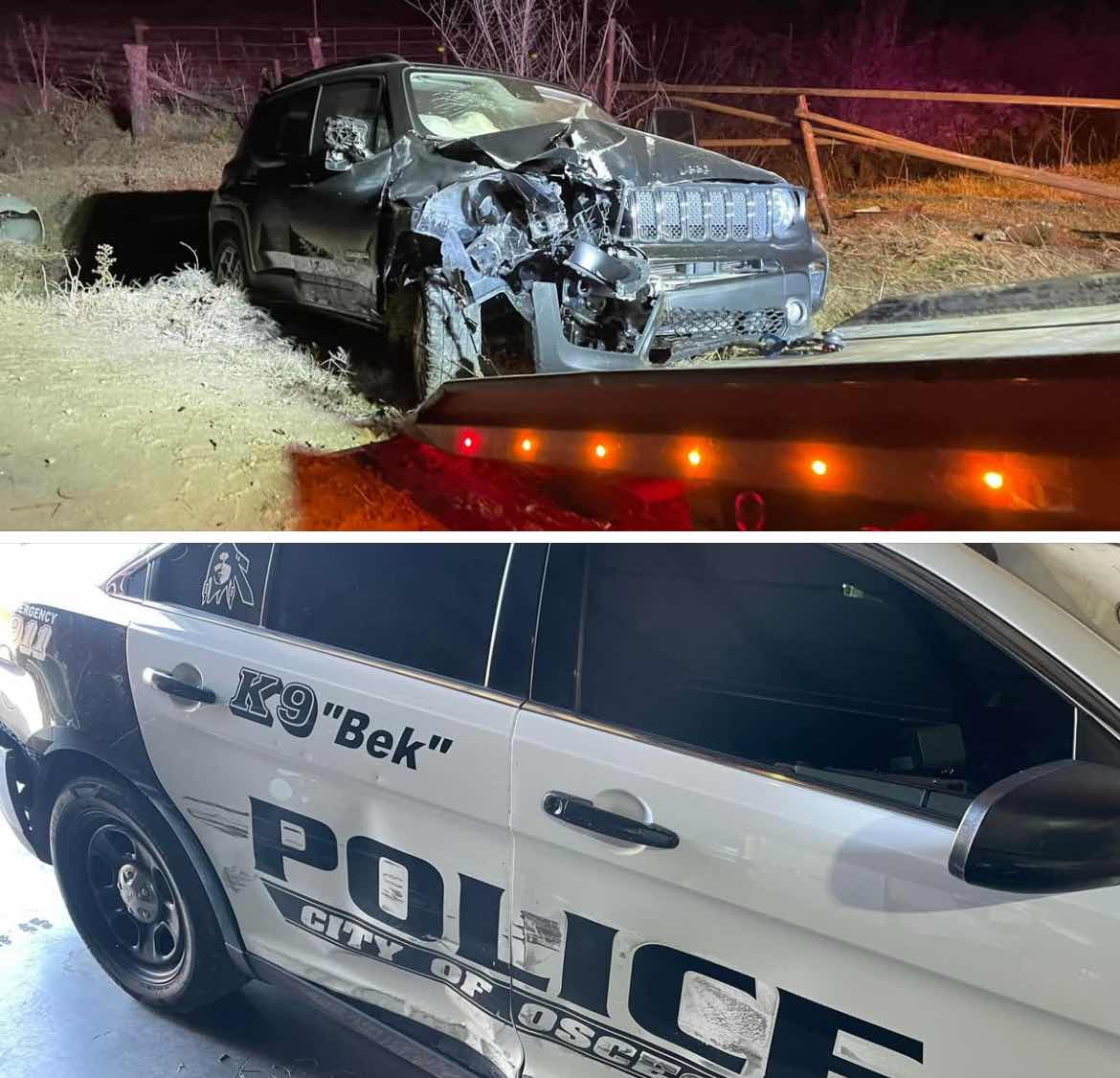 While Officer French attempted to conduct a traffic stop on the vehicle, the vehicle failed to stop for the Officer and did a U-turn heading back north failing to stop for Officer French. While the failure to yield began, the suspect began putting lives in danger by swerving from the fast lane to the slow lane, causing other vehicles to run off the roadway. The suspect's vehicle began traveling southbound in the northbound lanes toward oncoming traffic. The suspect's vehicle later slammed on its brakes causing the vehicle to strike Officer French's vehicle with K9 Beck inside the patrol car as well. The suspect's vehicle later went through Lowry City, Missouri, (a residential area), and later left the Lowry City limits and wrecked hitting a cattle fence. Officer French was able to take the suspect into custody. It should be noted that the suspect had an odor of intoxicants coming from his person as well as an open container inside the vehicle.